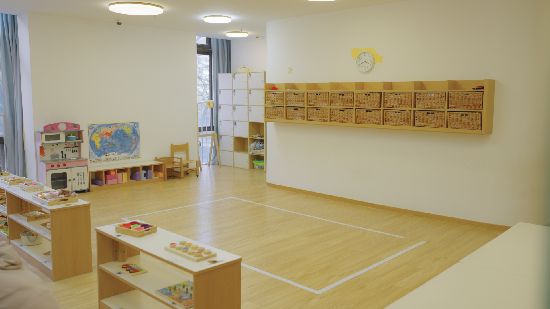 脚边的学习垫、墙上的纪录板、整皆摆放的玩教具,让这间不大的教室呈现出一种安定而握续的顺次感。