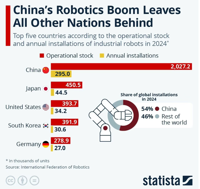 中国机器东谈主断层跳动, 拿下全球54%份额, 远超日本、好意思国