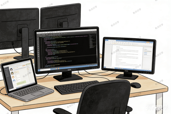 屏幕数目与职责复杂经过及摸鱼方便度成正比。
