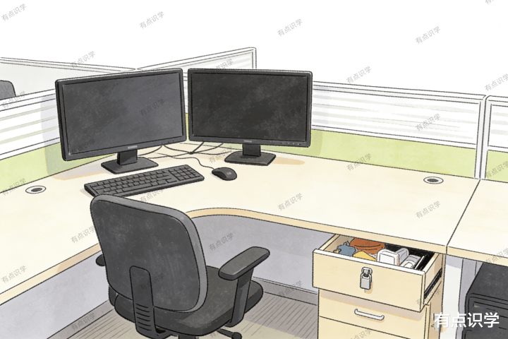 场景:放工后的工位,干净得像没东说念主用过,通盘个东说念主物品通盘锁进抽屉,只剩公司标配的电脑和表示器